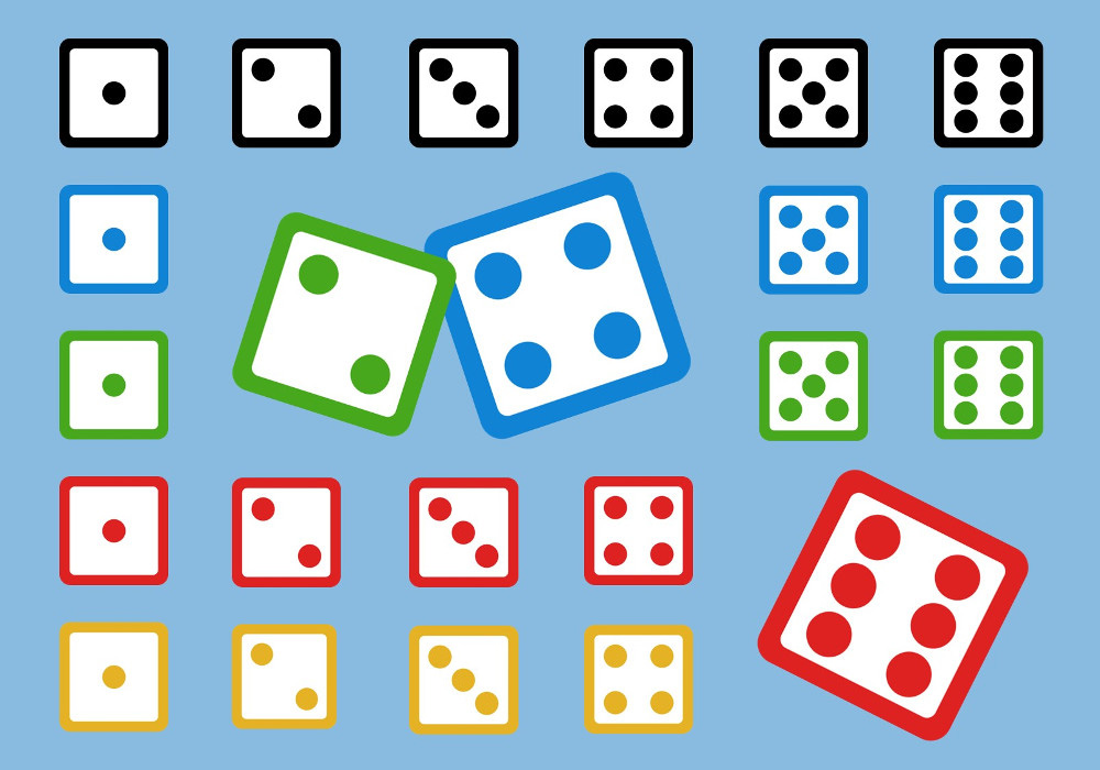 Würfelsymbole in fünf Farben