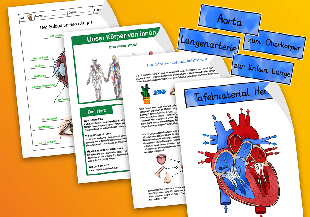 Illustrationen und Sachtexte zum Thema „Der menschliche Körper von innen“.