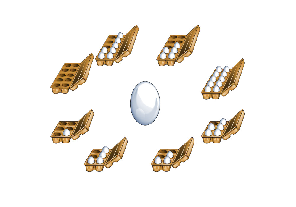• gefüllt mit 0 bis 6 Eiern, angeordnet in Spalten