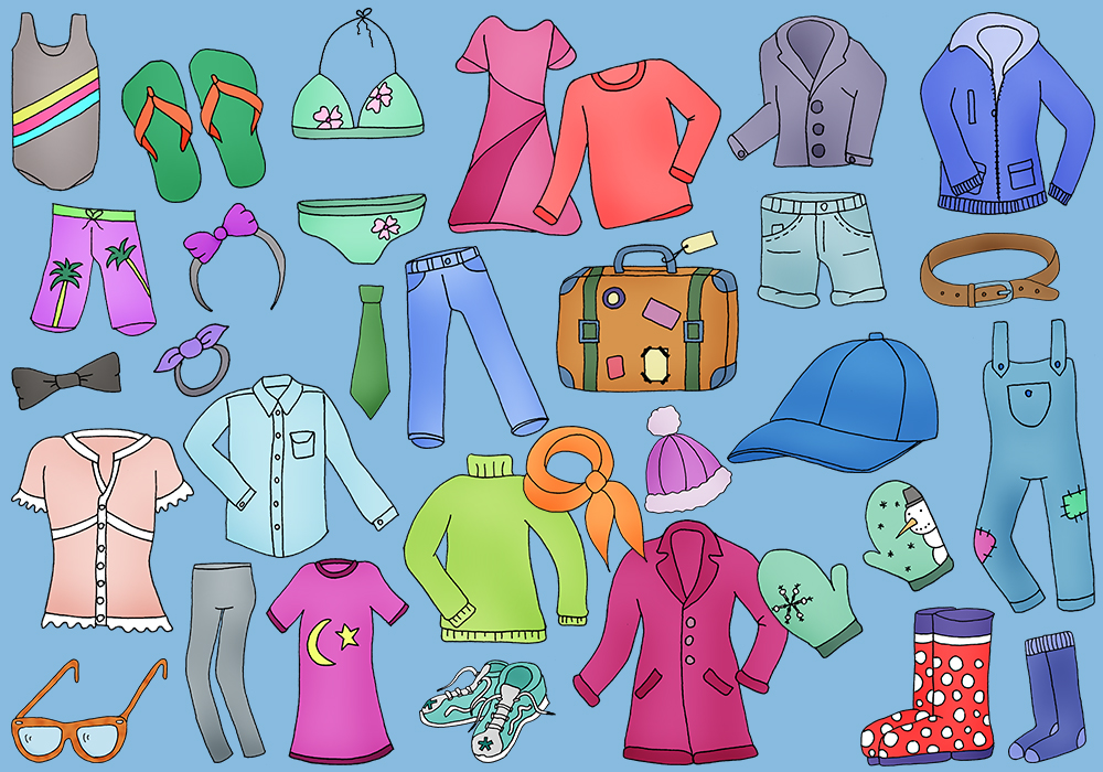 In diesem Paket findet ihr 57 Cliparts rund ums Thema Kleidung, gezeichnet von Frau Locke: