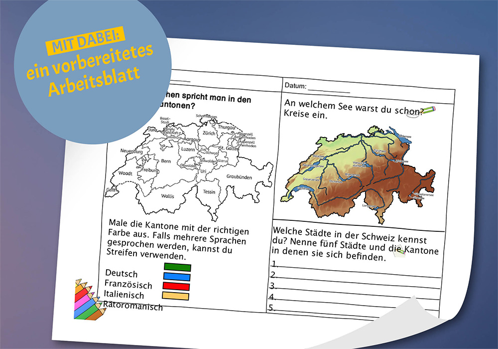 In dem Materialpaket findest du 13 Teilkarten der Schweiz, die du kombinieren kannst: