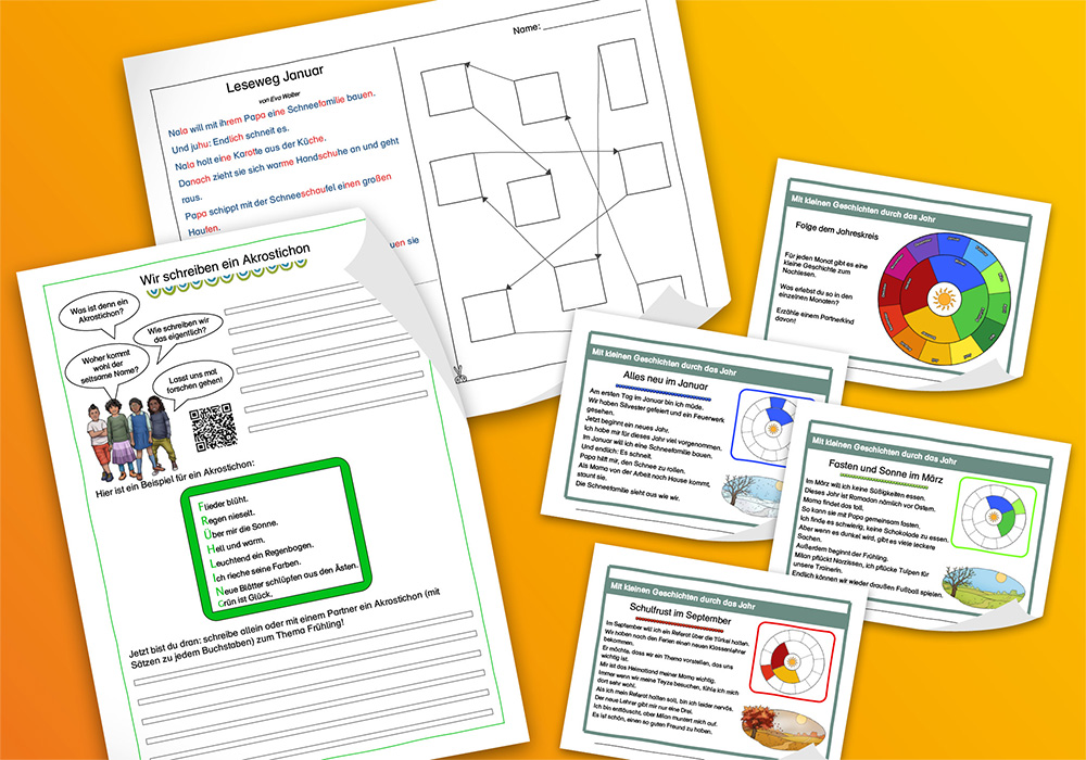Illustrationen und Texte zum Thema „Montessori: Jahreskreis“