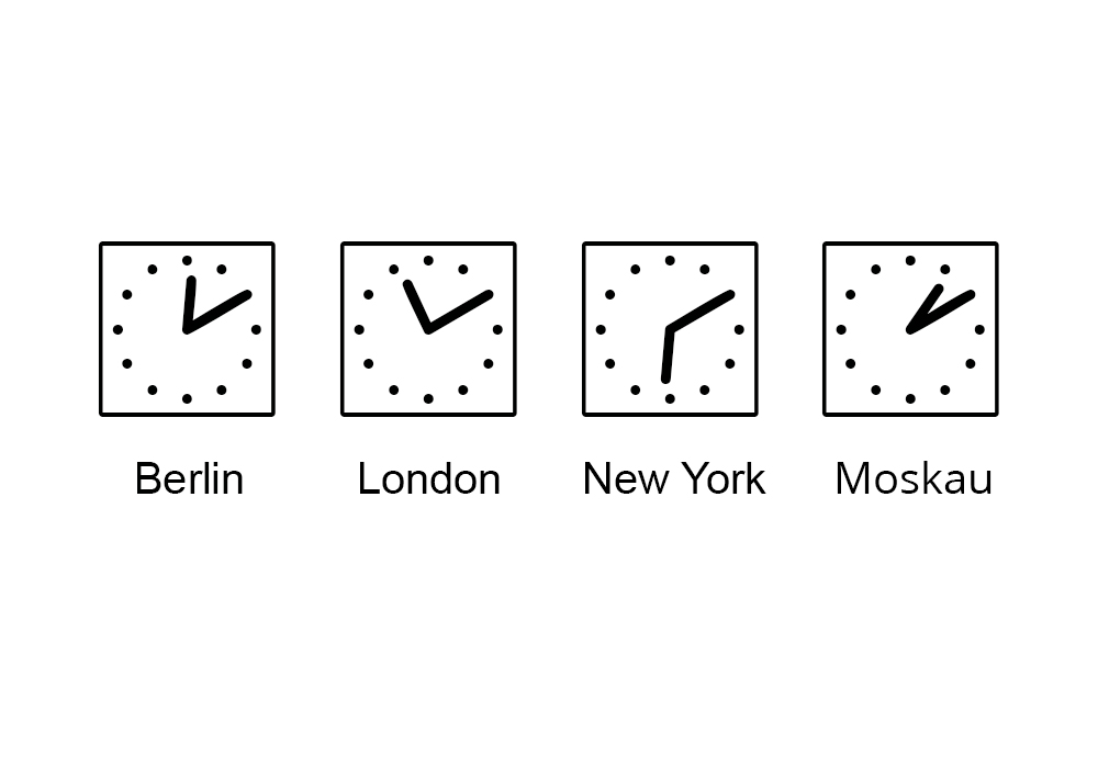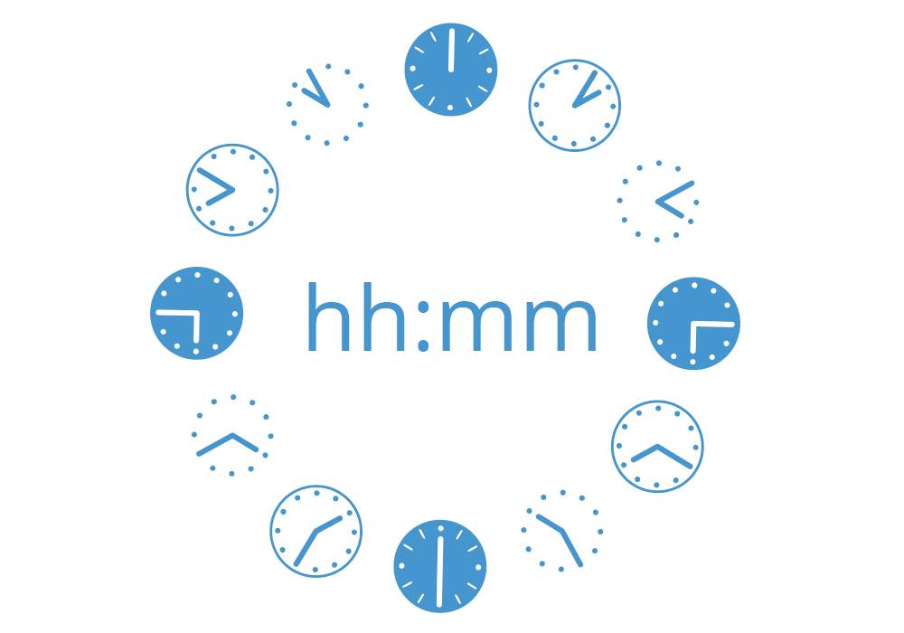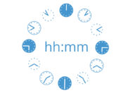 Fünf praktische Schriften, die bei der Eingabe einer Uhrzeit im Format hh:mm automatisch das passende Ziffernblatt anzeigen.