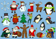 Dieses Paket enthält 19 süße Winter- und Weihnachtscliparts im Cartoonstil von ABC-Katze.
